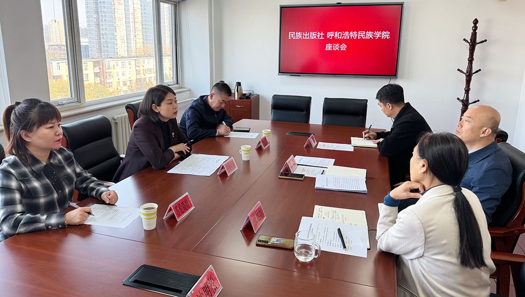 民族出版社有关部门负责同志,校党委委员、统战部部长朝格吉乐图,新闻传媒学院党总支书记苏伦高娃参加座谈交流。