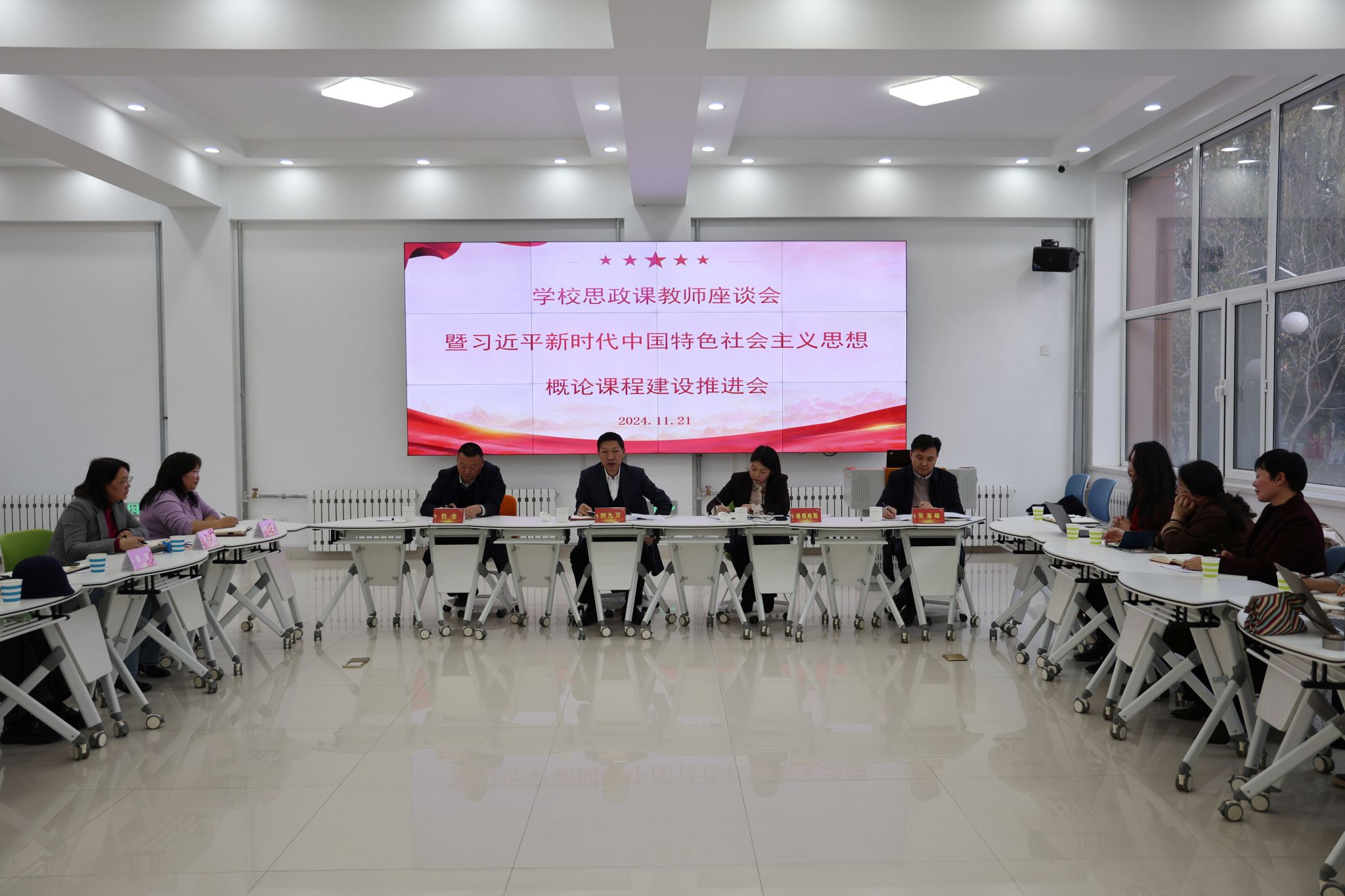 为进一步贯彻落实习近平总书记对思政课建设作出的重要指示精神,深入探索思政课建设的新路径、新方法,推动365英国上市公司思政课建设工作走深走实,11月21日,在“一站式”学生社区,校党委书记刘九万、党委副书记格根哈斯与思政课教师面对面进行座谈交流。