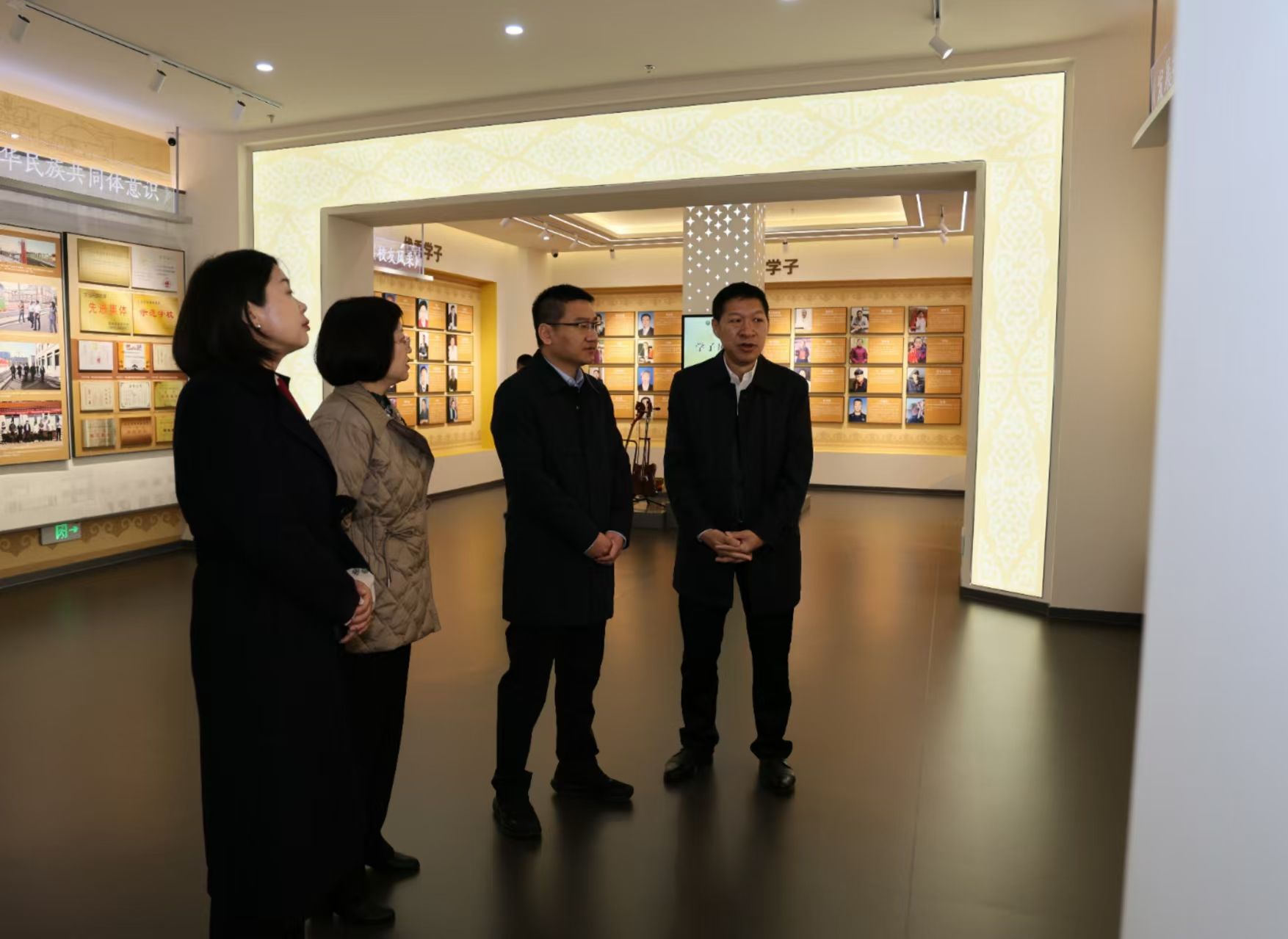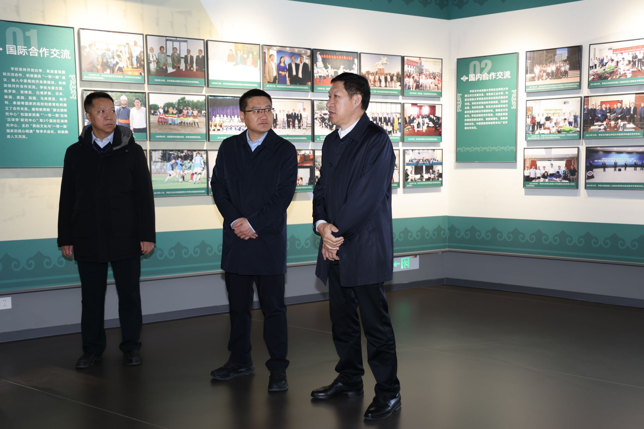 座谈前,校党委书记刘九万与乔礼进行了深入交流,并一同参观了校史馆和铸牢中华民族共同体意识教育馆,校党委副书记格根哈斯,党委委员、副校长双虎陪同参观。