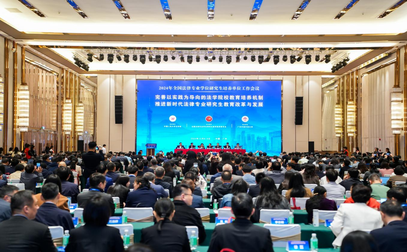 本次会议的主题为“完善以实践为导向的法学院校教育培养机制,推进新时代法律专业研究生教育改革与发展”,旨在深入贯彻落实党的二十届三中全会精神,全面学习贯彻习近平法治思想,深入学习贯彻习近平总书记在全国教育大会上的重要讲话精神,完善以实践为导向的法学院校教育培养机制,大力提升法律专业学位研究生教育教学水平。会议由全国法律专业学位研究生教育指导委员会主办、广东外语外贸大学承办、中国人民大学法学院协办。司法部、教育部、中国法学会、广东省司法厅、广东省教育厅等部门,以及北京大学、清华大学、中国人民大学、中国政法大学、武汉大学、吉林大学、中南财经政法大学、西南政法大学、华东政法大学、西北政法大学等全国260余所高校500多名代表参加会议。