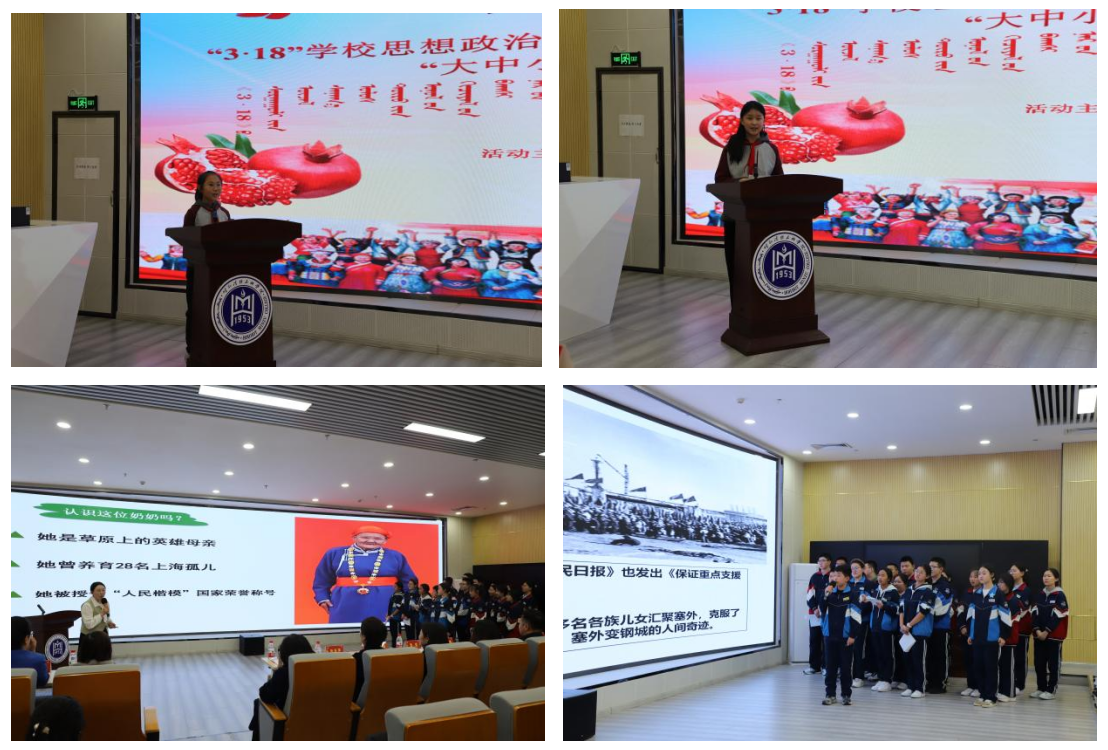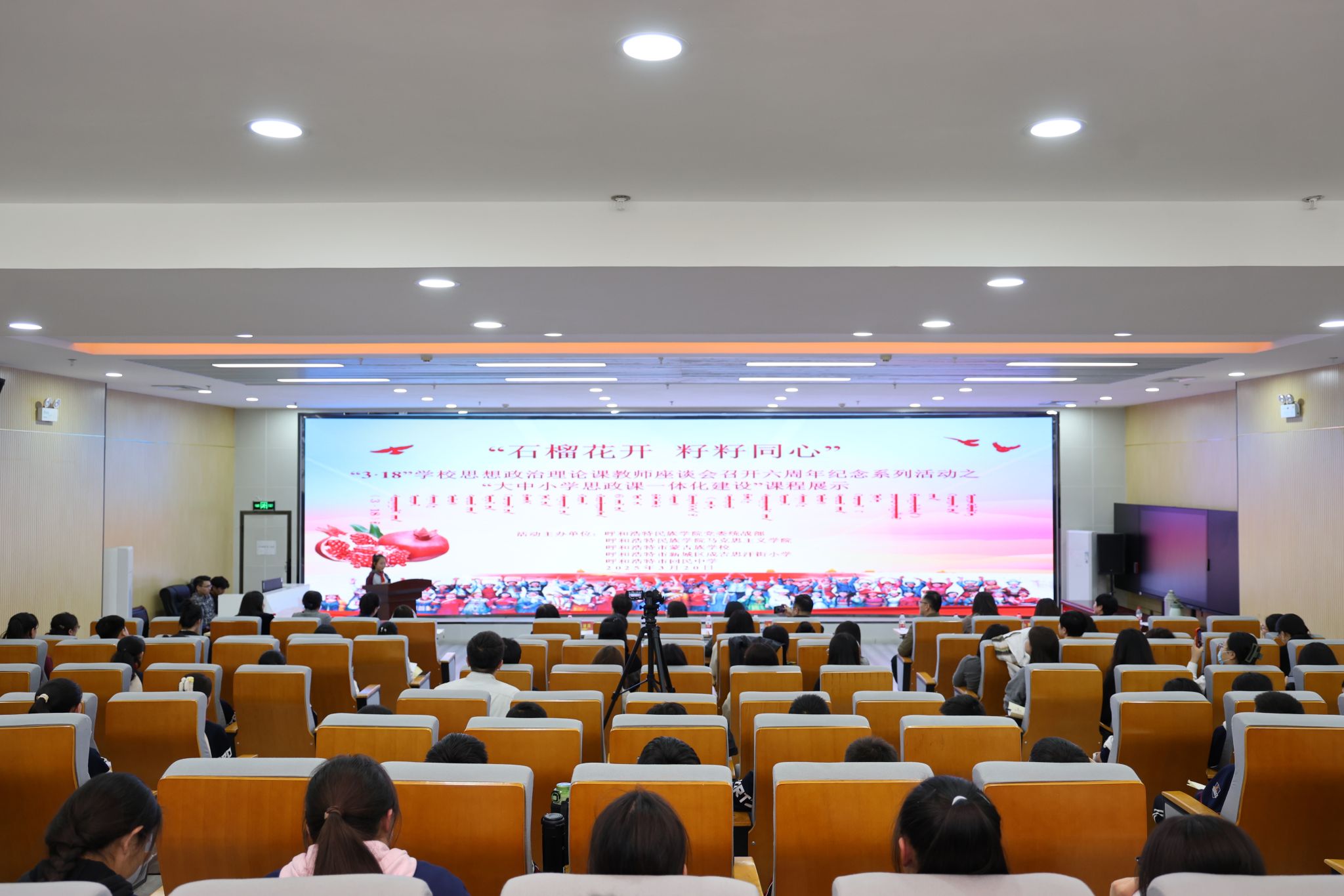 为深入贯彻落实习近平总书记关于思政课建设的重要指示精神,推进大中小学思政课一体化建设,3 月 20 日,校党委统战部、宣传部、教务处、对外合作与交流中心、马克思主义学院、呼和浩特市蒙古族学校、呼和浩特市回民中学、呼和浩特市新城区成吉思汗街小学联合开展了“石榴花开 籽籽同心”——“3・18”学校思想政治理论课教师座谈会召开六周年纪念系列活动之“大中小学思政课一体化建设”课程展示活动。校党委副书记格根哈斯出席活动。