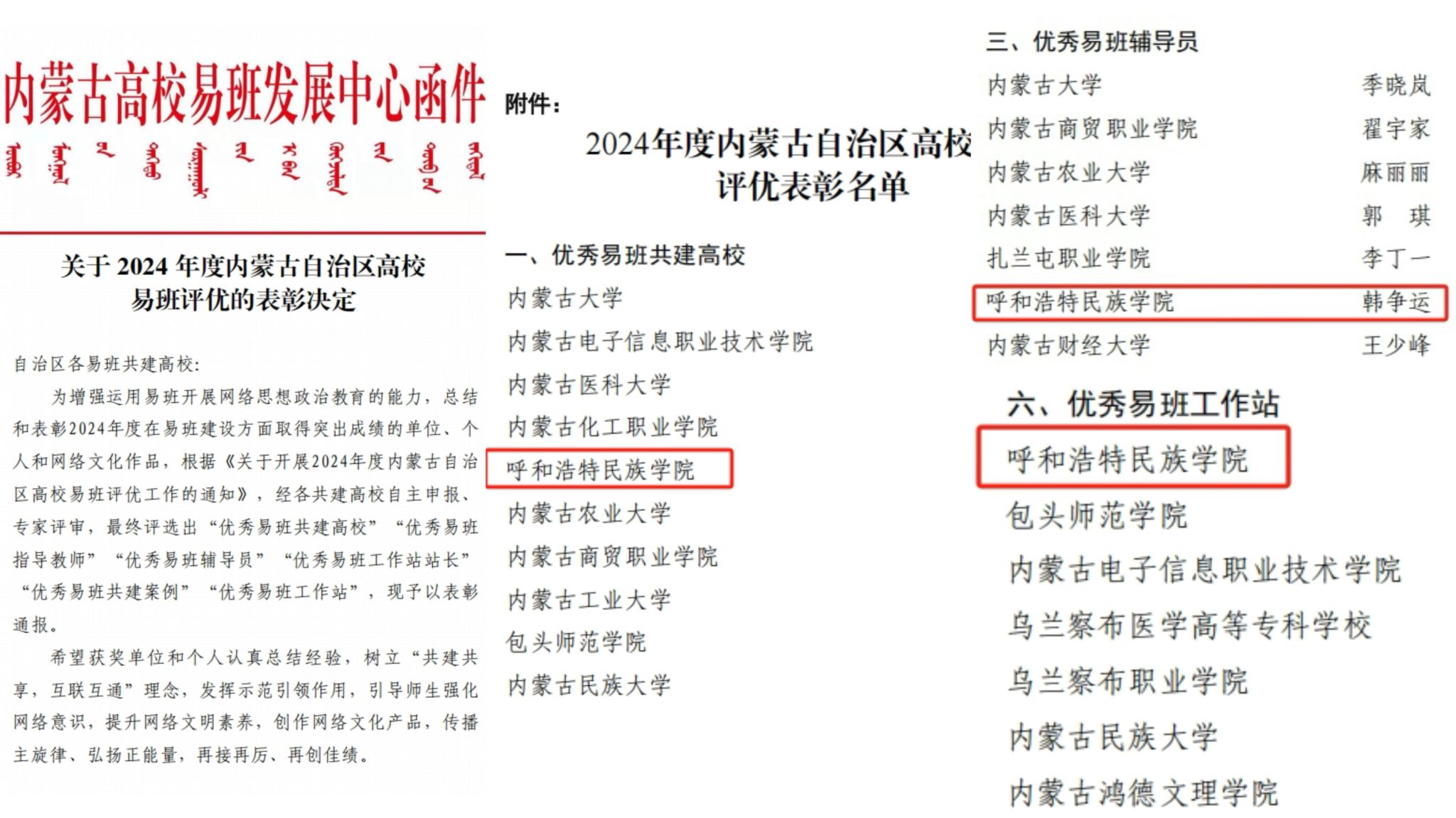 近日,2024年度内蒙古自治区高校易班评优结果公布。365英国上市公司获评“优秀易班共建高校”,这也是365英国上市公司连续四年获评此荣誉;校易班工作站获评“优秀易班工作站”;智能科学学院团总支书记韩争运被评为“优秀易班辅导员”。