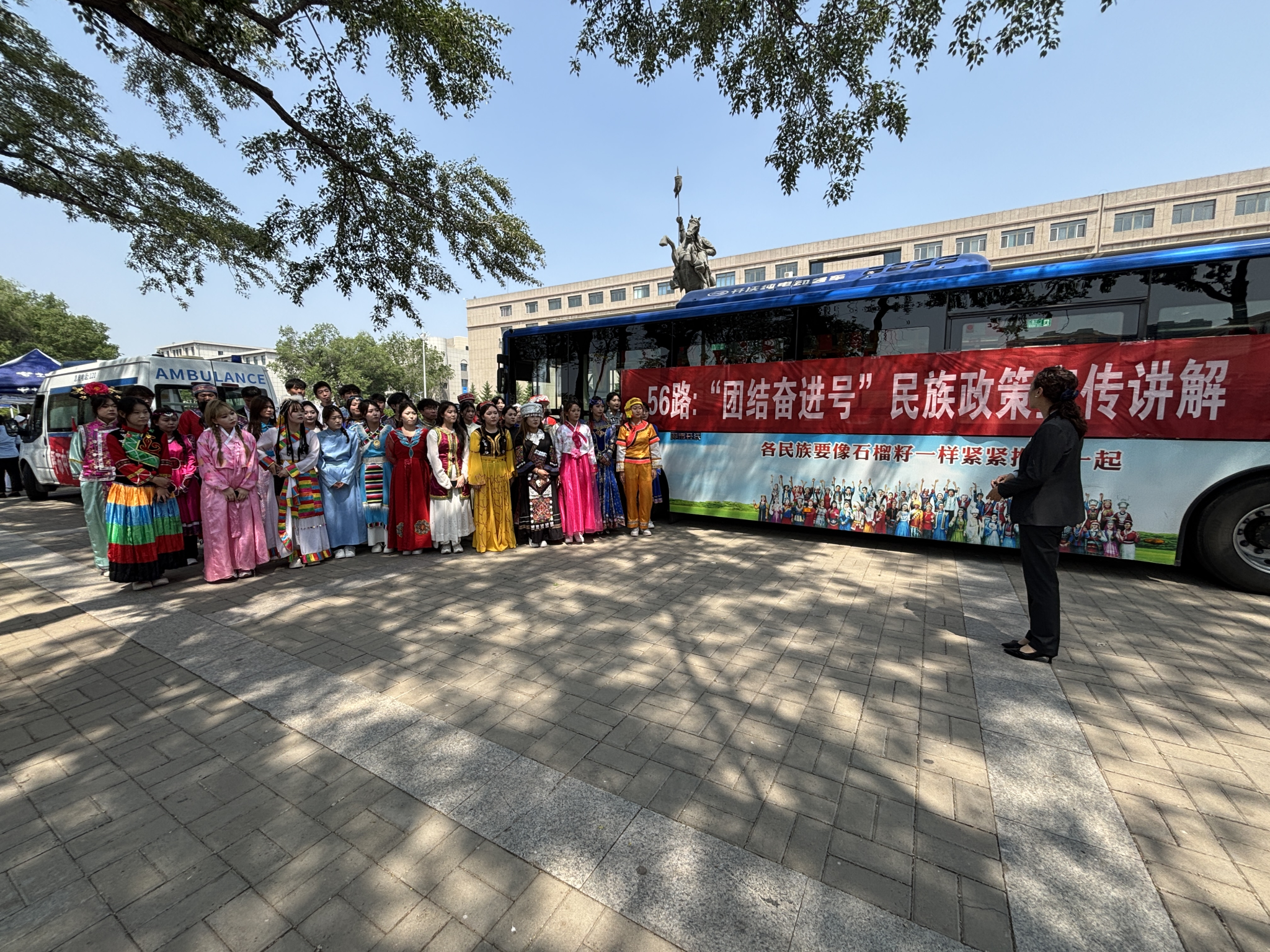 为有形有感有效铸牢中华民族共同体意识,弘扬北疆文化,推动民族政策宣传月、民族法治宣传周活动走深走实,5月28日,由学校党委统战部发起并组织自治区民族事务委员会地方语言文字研究应用中心(内蒙古民族团结杂志社)、内蒙古自治区测绘地理信息中心、内蒙古自治区住房资金中心、呼市公交公司、呼市中蒙医院、学校美术与设计学院等单位联合举办“石榴籽e起来——政策宣讲、科普服务进校园”活动。