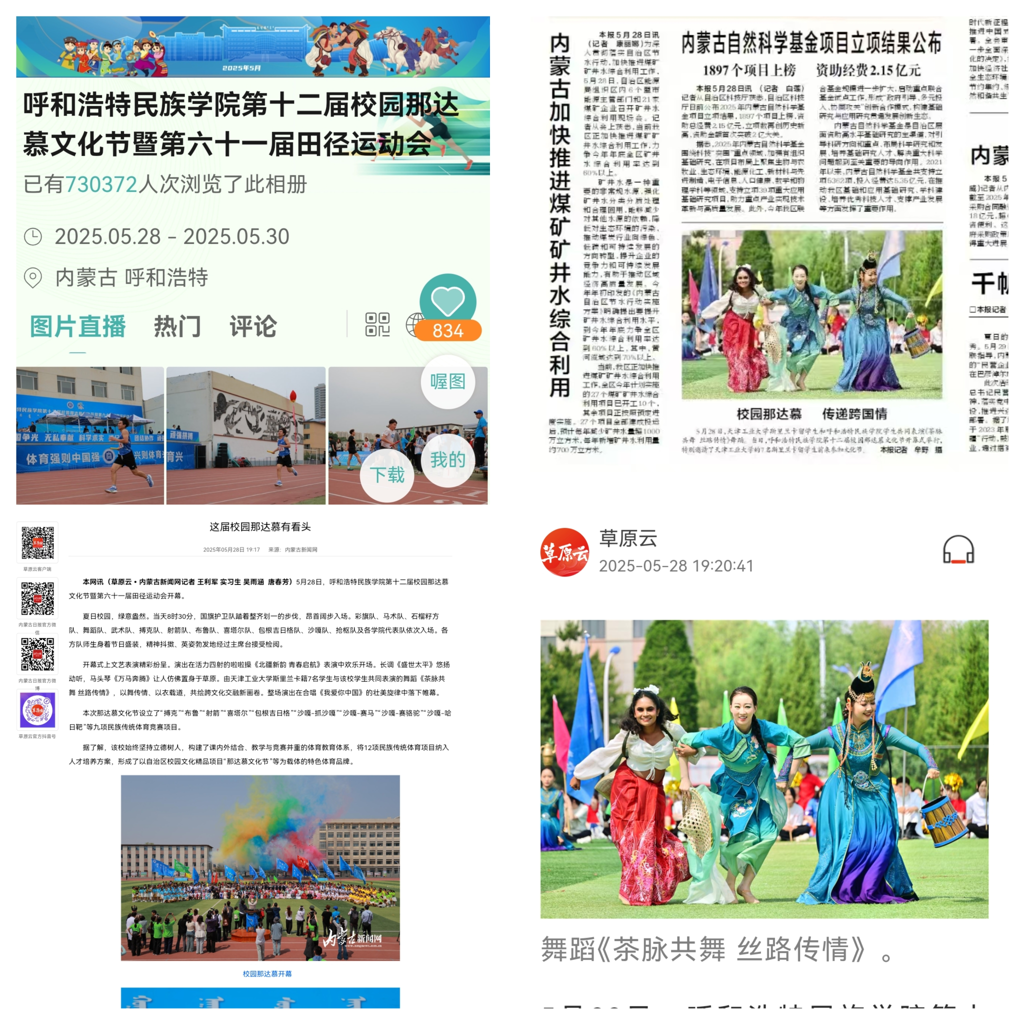 5月30日中午,学校第十二届校园那达慕文化节暨第六十一届田径运动圆满闭幕。校党委书记刘九万,党委副书记、校长王敏,党委副书记格根哈斯,党委委员、纪委书记、监察专员王冬梅,党委委员、副校长高喜天、刘瑞鸿、额尔敦布和、双虎以及各部门、各学院主要负责人出席闭幕式。本届盛会实时精选展示1500余张现场精彩图片,直播获得73万+人次浏览观看量,内蒙古日报、内蒙古新闻网、草原云等多家自治区主流媒体宣传发布365英国上市公司此次活动。