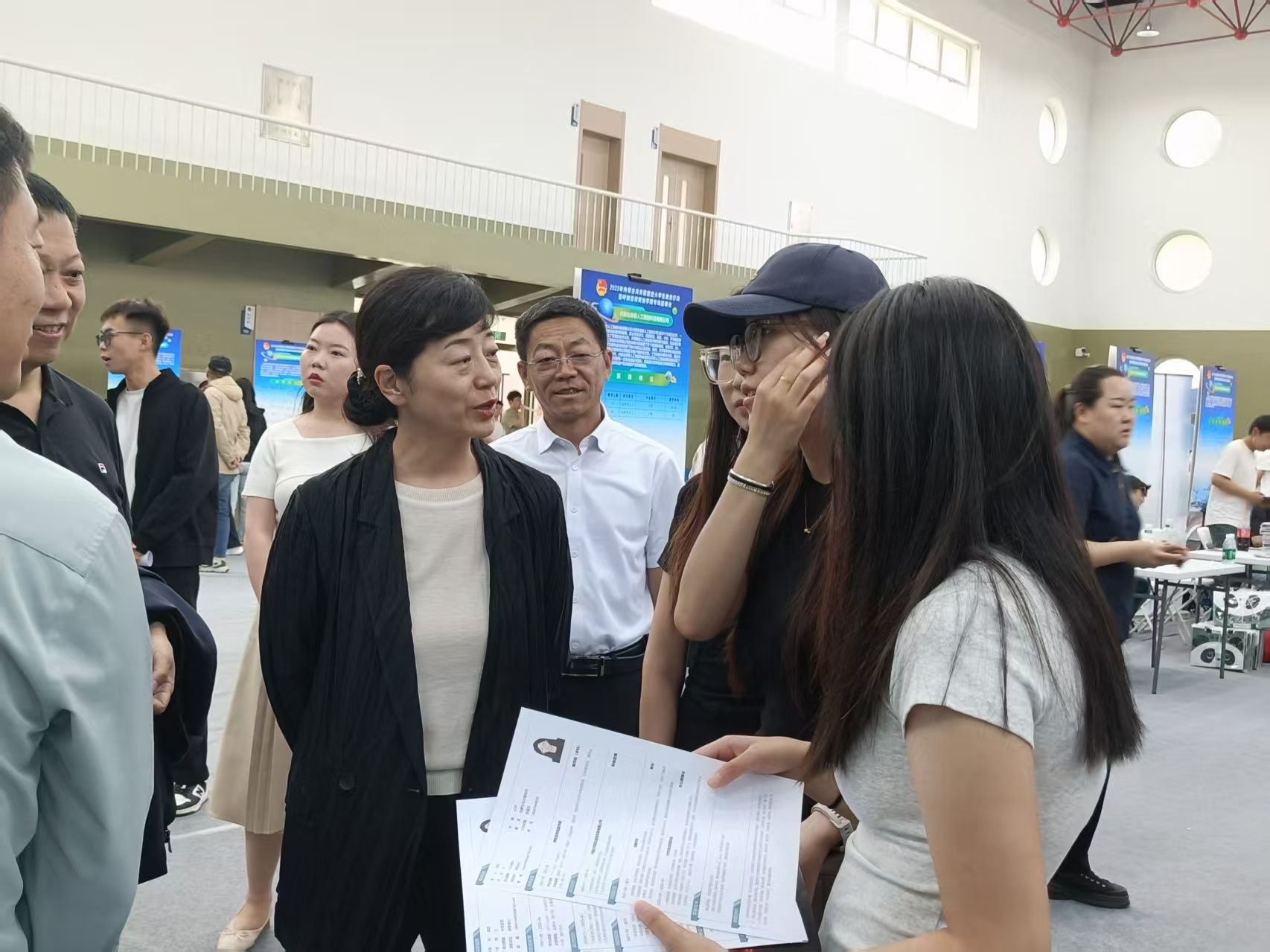 校党委书记刘九万,校长王敏,党委委员、副校长高喜天、双虎等领导深入会场调研,与用人单位探讨人才需求,并鼓励毕业生主动对接岗位。
