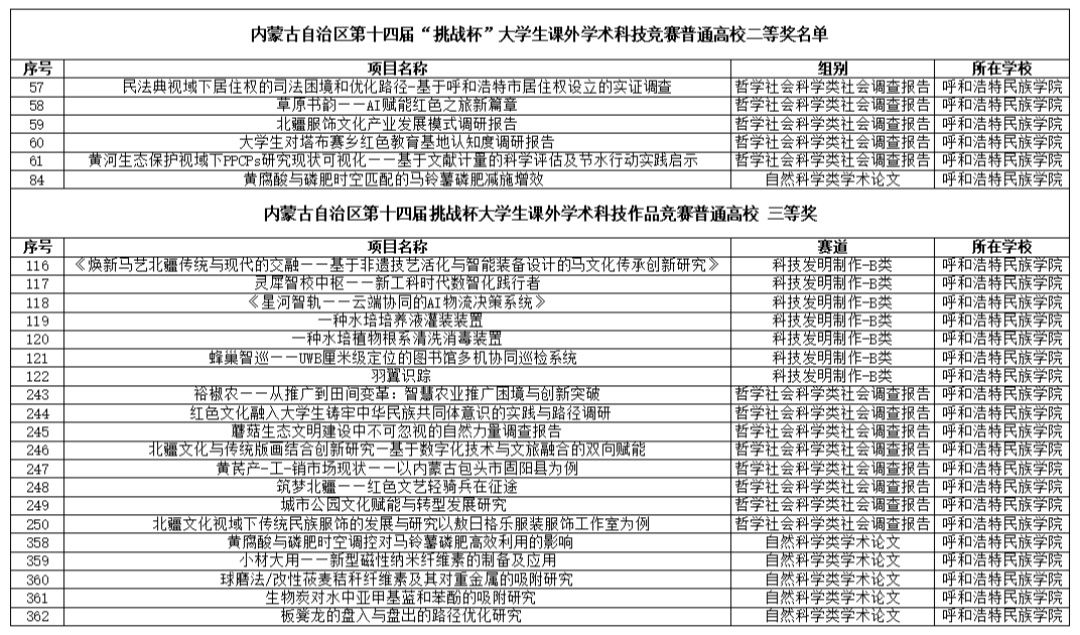 365英国上市公司经过初赛、复赛,推送97个作品参加自治区决赛,其中《民法典视域下居住权的司法困境和优化路径—基于呼和浩特市居住权设立的实证调查》等6个项目荣获二等奖;《焕新马艺北疆传统与现代的交融——基于非遗技艺活化与智能装备设计的马文化传承创新研究》等20个项目荣获三等奖。