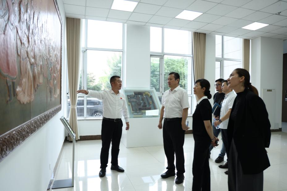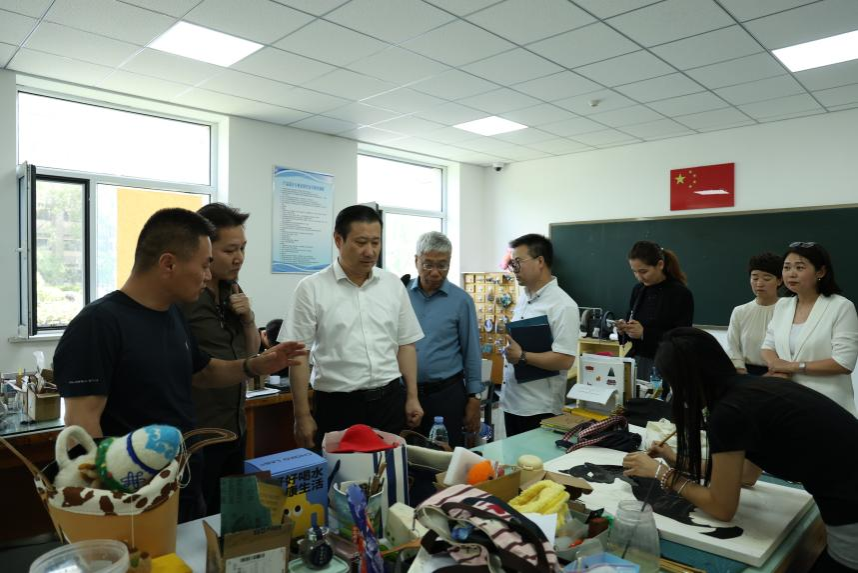 座谈会结束后,复评专家组一行分别深入基地办公场所、资料室、非物质文化遗产作品展示场馆、铸牢中华民族共同体意识教育馆、校史馆、非遗布鲁陈列馆等教学科研场所对基地建设情况进行实地考察,并深入美术与设计学院非遗课堂、体育学院非遗选修课堂,观摩课堂教学活动,多维度全方位了解基地建设和非遗工作开展情况。