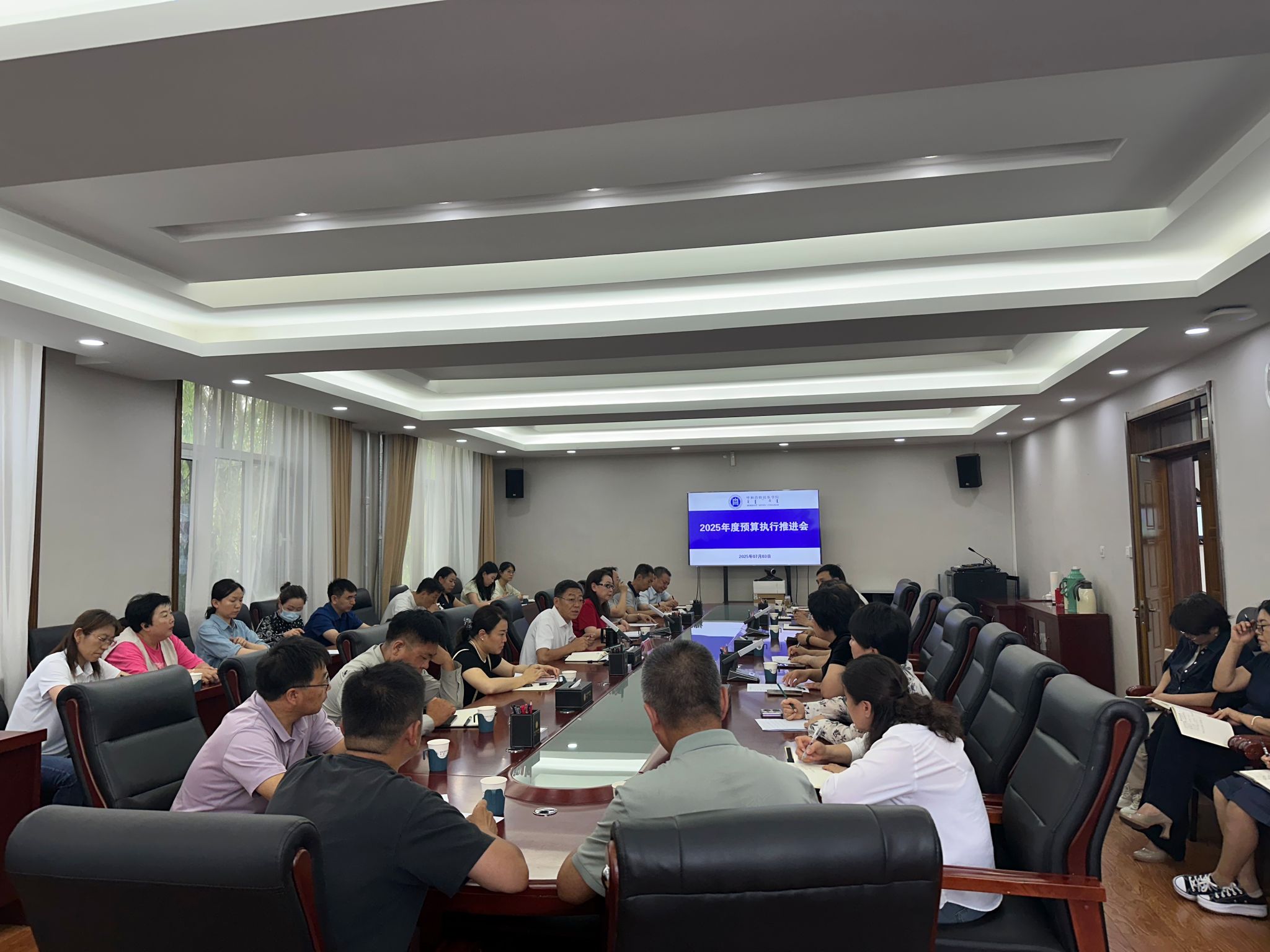 为进一步推进2025年预算执行、做好2026年预算编制工作,7月3日下午,学校召开2025年度预算执行推进会。会议由校党委委员、副校长高喜天主持,各学院院长及职能部门负责人参加会议。