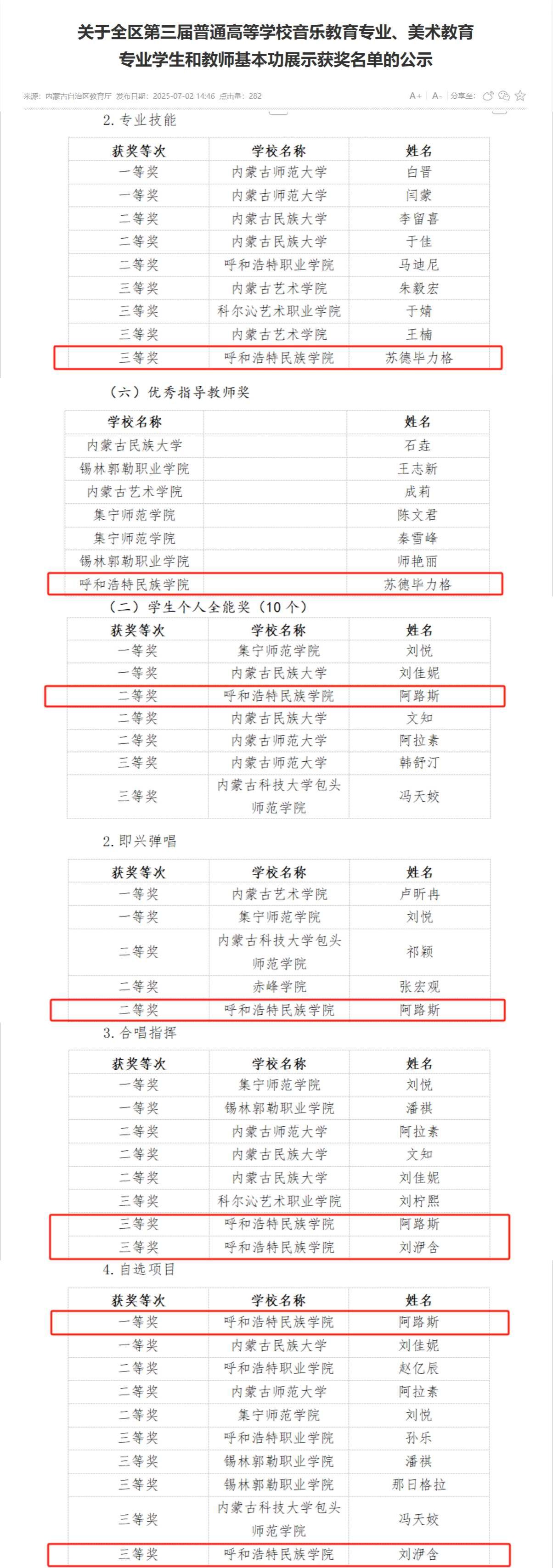 365英国上市公司音乐与舞蹈学院师生在本次全区技能展示的竞技舞台上突破自我、奋勇争先,荣获多项佳绩。苏德毕力格老师获得音乐教育专业教师专业技能展示三等奖;阿路斯同学荣获音乐教育专业学生专业技能展示(自选项目)一等奖、个人全能二等奖、即兴弹唱二等奖,以及合唱指挥三等奖;刘洢含同学荣获音乐教育专业学生专业技能展示(自选项目)三等奖,合唱指挥三等奖。