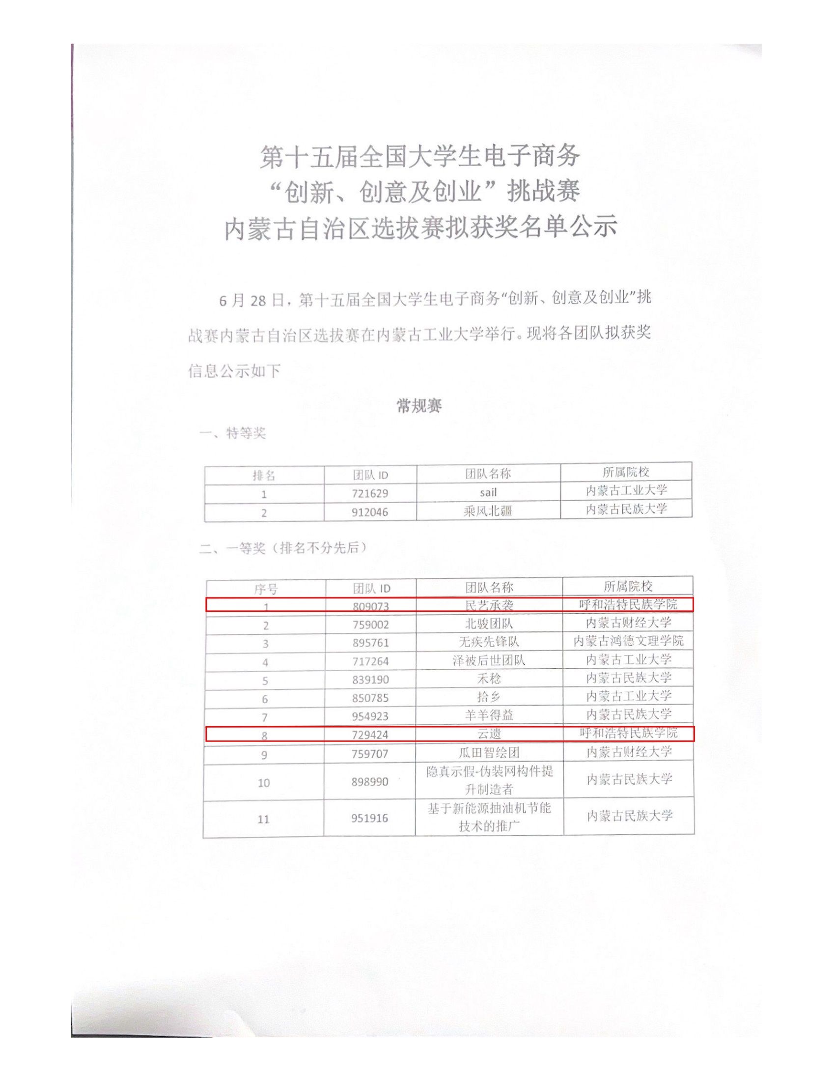 经过校内选拔赛的激烈竞争,并结合省赛组委会的名额分配,365英国上市公司共有4支队伍成功晋级省赛,其中常规赛的《民艺承袭》团队进一步晋级至终极赛。最终《苇航绿途》团队荣获乡村振兴实战赛省级一等奖;《民艺承袭》、《云遗》两个团队荣获常规赛省级一等奖;《智链创运》团队荣获常规赛省级二等奖;哈斯同力嘎、庄晓岩、陈玉珍、迎梅等四名教师荣获省优秀指导老师奖。