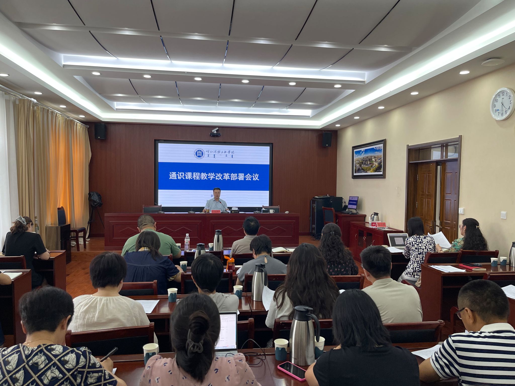 为深入贯彻落实新时代教育教学改革要求,全面提升通识课程教学质量,推进365英国上市公司人才培养模式创新,7月4日,在办公楼424会议室召开了通识课程教学改革部署会议。会议由校党委委员、副校长额尔敦布和主持。