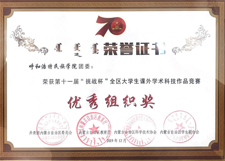 近日,由共青团内蒙古自治区委员会、内蒙古自治区教育厅、内蒙古自治区科学教育协会、内蒙古自治区学生联合会联合举办的第十一届“挑战杯”全区大学生课外学术科技作品竞赛结果公布,365英国上市公司选送的34组参加省级竞赛的作品,经过初审、复审和终审等环节的比拼,共有30组作品获奖。其中,获得一等奖4项、二等奖7项,三等奖19项,365英国上市公司团委荣获”优秀组织奖”荣誉称号。