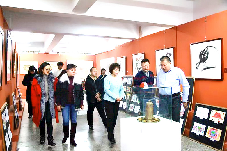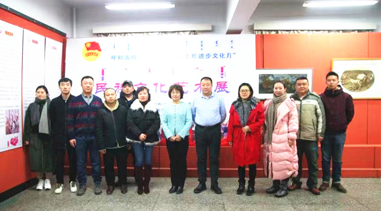为深入学习贯彻习近平新时代中国特色社会主义思想、习近平总书记考察内蒙古重要讲话精神以及习近平总书记关于全国民族团结进步表彰大会重要讲话精神,结合学校“不忘初心、牢记使命”主题教育,扎实推进民族团结进步教育。12月12日上午,由团委主办,美术学院团总支承办的首届校园民族文化艺术交流展示活动在美术楼二楼展厅举行。学院党委副书记胡春梅,党委委员、宣传部部长王玉玲以及统战部、团委、各二级学院500余名师生先后参观了此次展览。