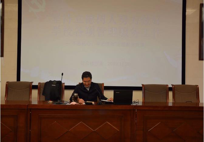 为深入贯彻习近平新时代中国特色社会主义思想和党的十九大精神,11月20日上午在图书馆一楼报告厅,贺希格吉雅副校长以《坚持立德树人,努力做好各项管理服务工作》为题目讲授了主题党课。保卫处负责人、后勤处负责人、图书馆负责人和全体党员、干部参加了学习。