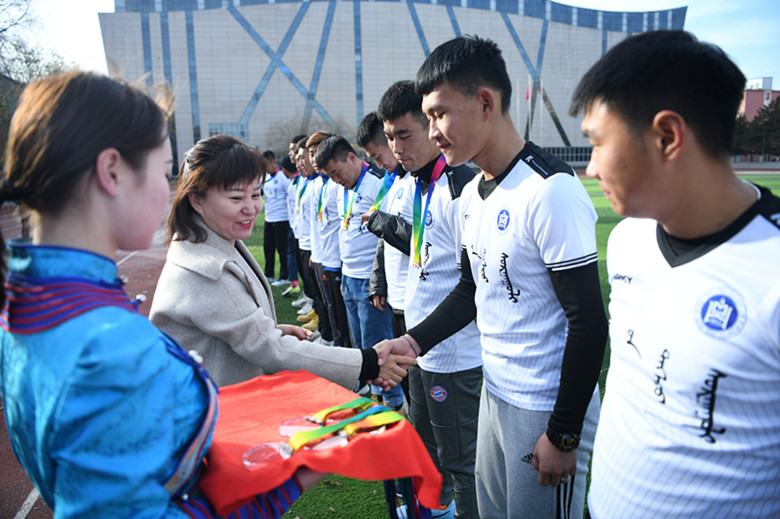 校党委委员、副校长阿拉坦仓为亚军队员颁发奖牌