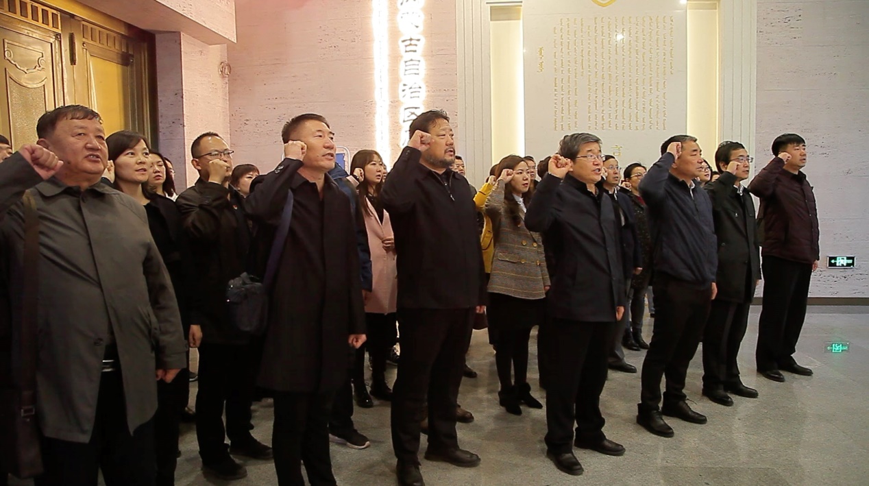 参观结束后,全体党员干部面向党旗,庄严宣誓,重温了入党誓词。