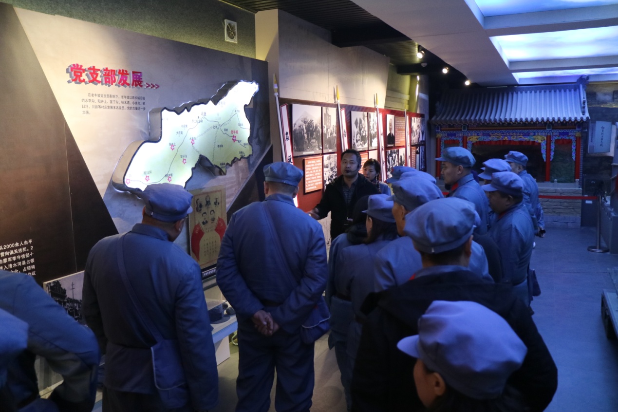 接着,在教育基地陈琪老师的引领下,参观了老牛坡党支部旧址、老牛坡党支部展馆、老牛坡红色文化广场、北堡村抗战等遗址,青龙洞山生态文明建设现场教学点。