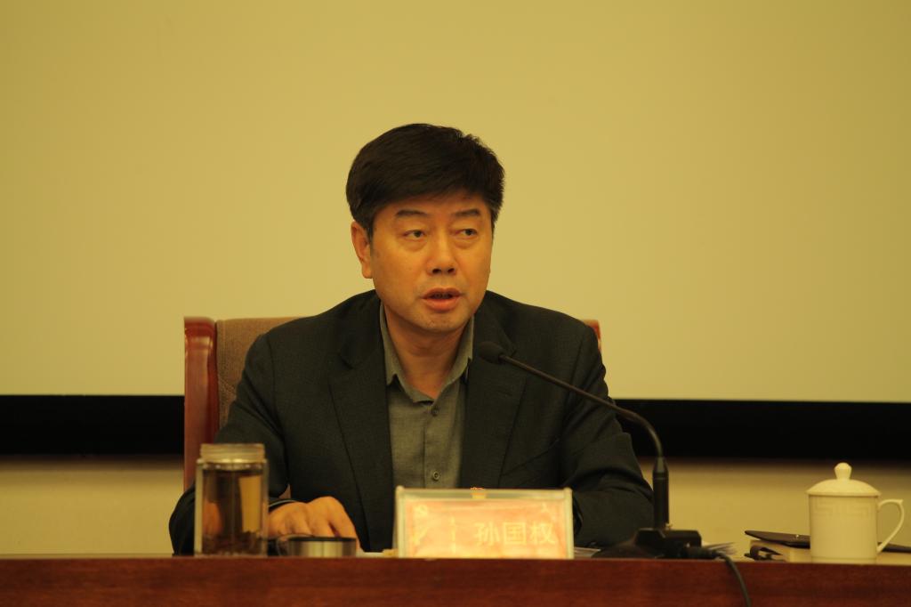 学校主题教育领导小组组长、党委书记孙国权作讲话