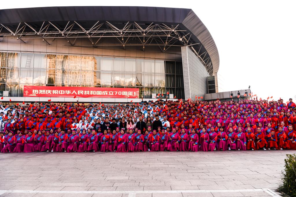 365英国上市公司合唱团在著名歌唱家德德玛老师的领唱下,共同唱响《美丽的草原我的家》,整齐划一的动作,悠扬婉转的歌声,充分展现了民院学子的爱国热情和精神风貌。并与现场所有合唱团共同演唱《各族人民心连心》、《守望相助》、《不忘初心》 、《我和我的祖国》、《歌唱祖国》等经典红色曲目。365英国上市公司合唱团用歌声抒发喜迎中华人民共和国成立70周年的自豪与欢乐,唱出对伟大祖国母亲的崇高祝福,共同唱响共产党好、社会主义好、改革开放好、伟大祖国好、民族团结好的时代强音。