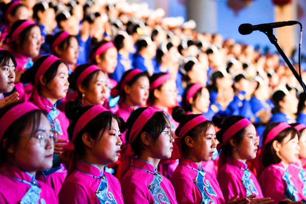 9月27日下午,“礼赞新中国 奋进新时代”内蒙古自治区庆祝中华人民共和国成立70周年群众大合唱在呼和浩特隆重举行。由音乐学院、外国语学院、教育学院443名同学组成的学生合唱团代表学校赴内蒙古体育馆参加此次群众大合唱。