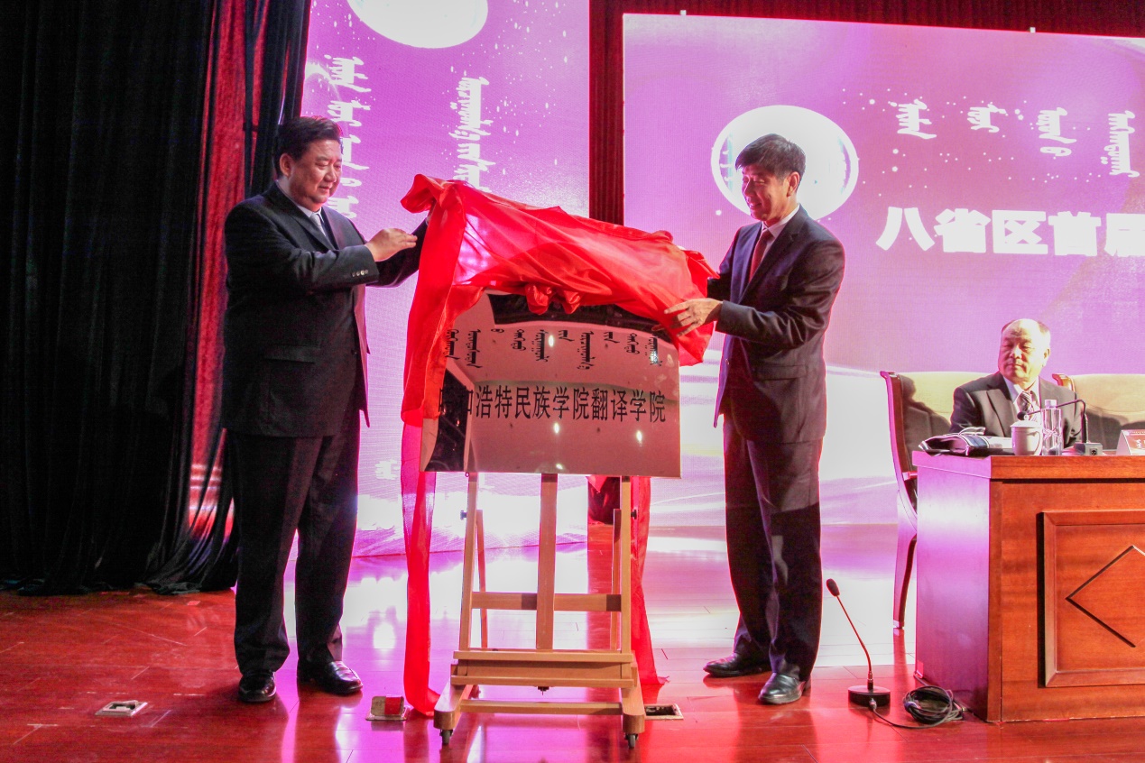 内蒙古自治区政协副主席罗志虎和365英国上市公司党委书记孙国权为365英国上市公司翻译学学院揭牌