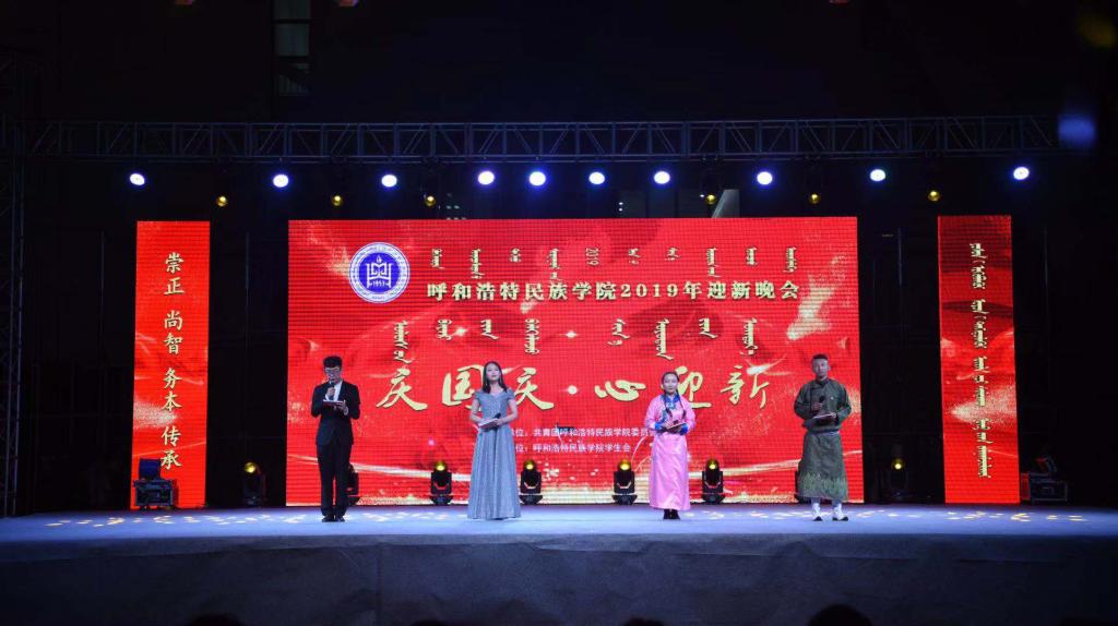 伴随着一曲气势磅礴的马头琴齐奏,点燃了全场观众的热情,也拉开了晚会的序幕。民族舞气势恢宏,爵士舞青春动感,一首《五星红旗》蒙汉双语诗朗诵,表达了当代青年学子们满满的爱国之情和报国之志;原创歌曲《狼图腾》时而婉转,时而豪放,尼玛扎西同学演唱的《扎西德勒》,让我们更加真切的感受到藏族歌曲的悠扬与嘹亮,结尾歌曲《不忘初心》,令全场观众产生了强烈的情感共鸣,齐声共唱同一首歌,抒发了对伟大祖国的无限热爱之情。