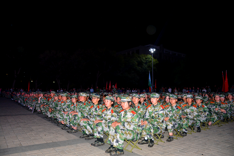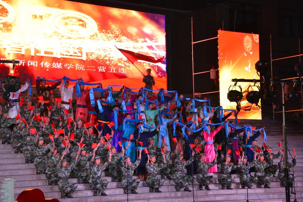 来自各学院的15支新生代表队依次带来了《歌唱祖国》《赞歌》《美丽的草原我的家》《打靶归来》、《强军战歌》《欢快的方阵》《七十五厘米》《强军战歌》《当那一天来临》《光荣啊 中国共青团》《亮剑》《假如战争今天爆发》等经典歌曲,表达了对祖国、对党、对学校的热爱之情和对青春的赞美。