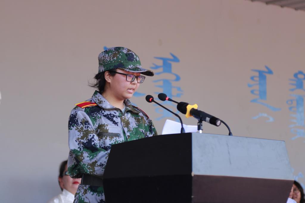 随后,雪梅副教授代表教师发言,勉励新生认真学习、铭记感恩、追逐梦想,为中华民族伟大复兴贡献自己的智慧和力量;孙布日同学代表在校生发言,鼓励新生珍惜大学时光,丰富大学生活,在呼和民院谱写新的人生篇章;新生代表王雪纯同学表示,会尽快适应大学生活,刻苦学习,严于律己,努力提高自身素质,以实际行动迎接丰富多彩的大学生活;周孝儒教官代表承训部队发言,他希望同学们认真上好“入学第一课”,强化爱国情怀,增强国防观念,养成良好习惯。他代表承训部队承诺,积极配合学校军训工作安排,保证高质量、高标准完成军训任务。