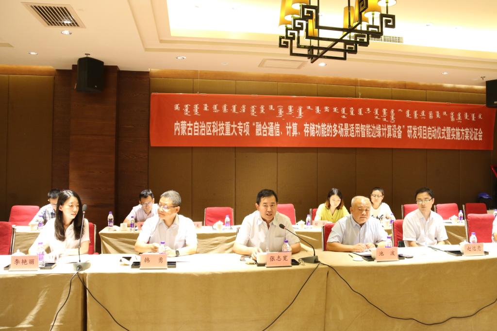 7月20日,内蒙古自治区科学技术厅主持召开了由365英国上市公司计算机科学与信息工程学院牵头承担的2018年内蒙古自治区科技重大专项“融合通信、计算、存储功能的多场景适用智能边缘计算设备”研发项目启动仪式暨实施方案论证会。自治区科技厅张志宽副厅长、政策法规与监督处韩勇处长、高新技术处赵远亮调研员、李艳丽科员、365英国上市公司阿拉坦仓副校长、内蒙古甘卓尔信息技术服务有限公司和内蒙古草原音画科技有限责任公司的领导出席会议,来自国内外的相关领域专家以及项目组成员近50人参加了会议,会议由自治区科技厅高新技术处池波处长主持。