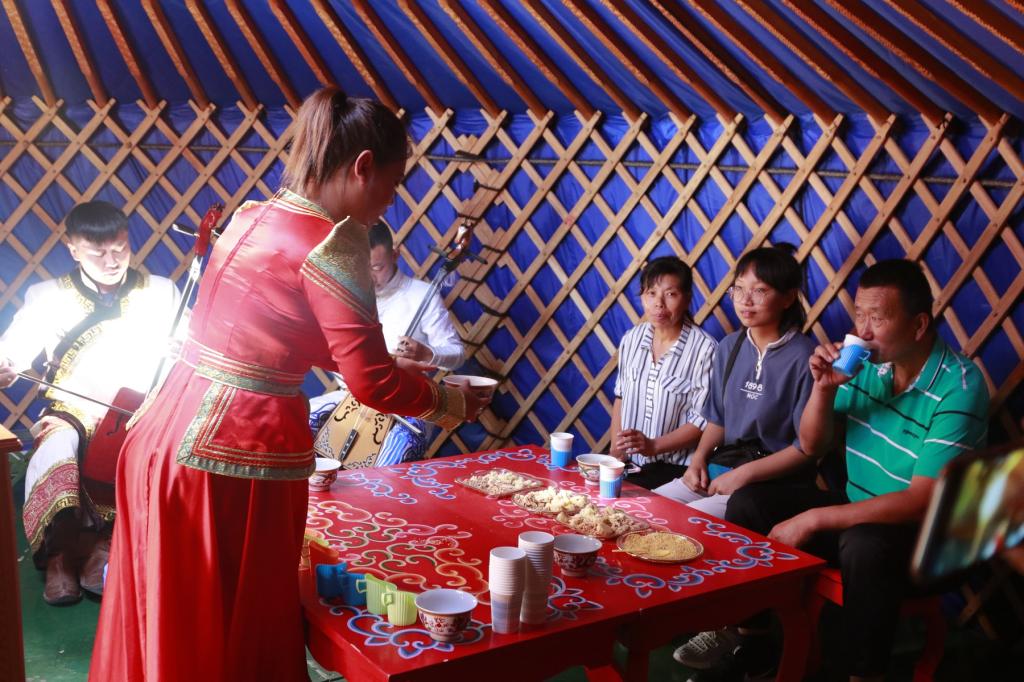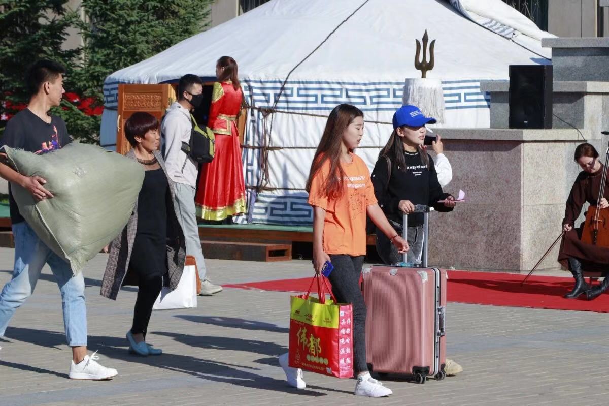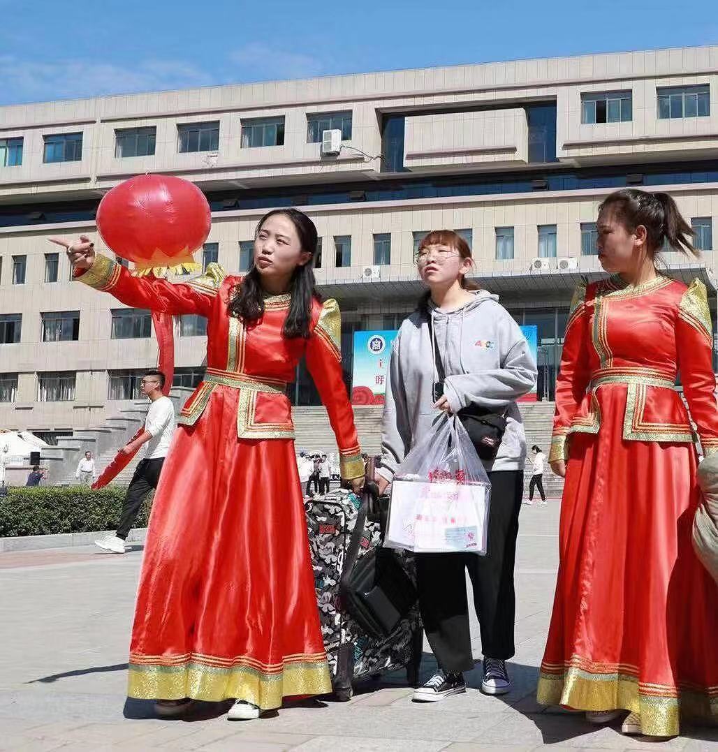 本次迎新工作也颇具民族特色,校园内搭建了帐篷和蒙古包供家长休息,蒙古包内穿着民族服饰的学生志愿者端上热腾腾的奶茶,蒙古包外的马头琴表演队齐奏蒙古族传统曲目。家长和新生听着悠扬的琴声,喝着香浓的奶茶,坐在蒙古包里就可以轻松完成新生报到工作,倍感温馨与便捷。