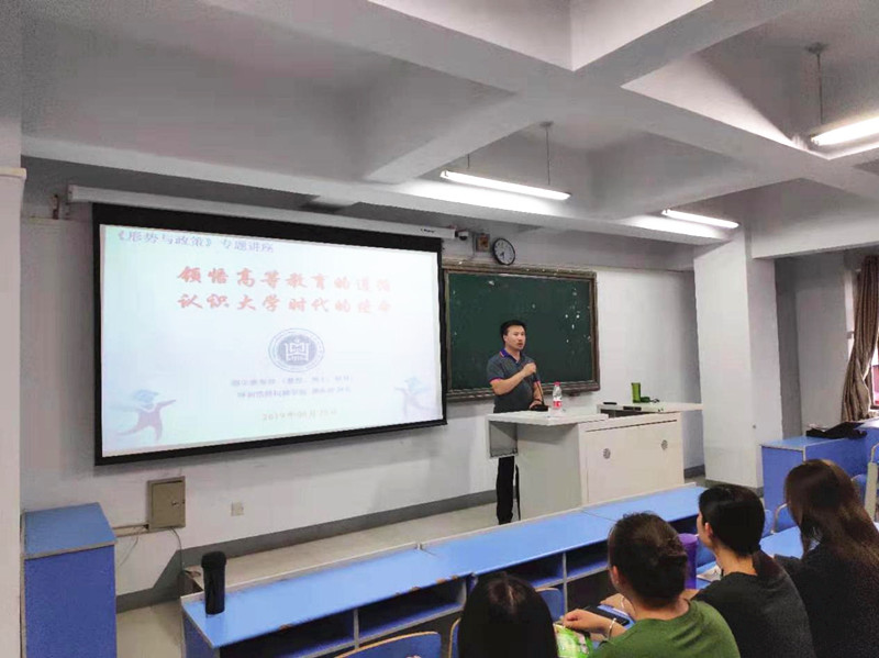 为贯彻落实全国全区学校思想政治理论课教师座谈会精神,进一步落实教育部关于《加强新时代高校“形势与政策”课建设的若干意见》和《新时代高校思想政治理论课教学工作基本要求》等文件精神,进一步提高学校思想政治课教学质量,充分发挥领导干部在宣讲党的理论、路线、方针、政策上的示范带头作用,6月18日——7月4日,校党委书记、校长及领导班子其他成员、党委委员、职能部门负责人、党总支书记先后走进思政课堂,共同为大学生讲授“形势与政策”课,并在课上与学生进行有效的互动,实现了思政教学全覆盖,增强了思政课的吸引力和感染力,有效地发挥了思政育人的主渠道作用。