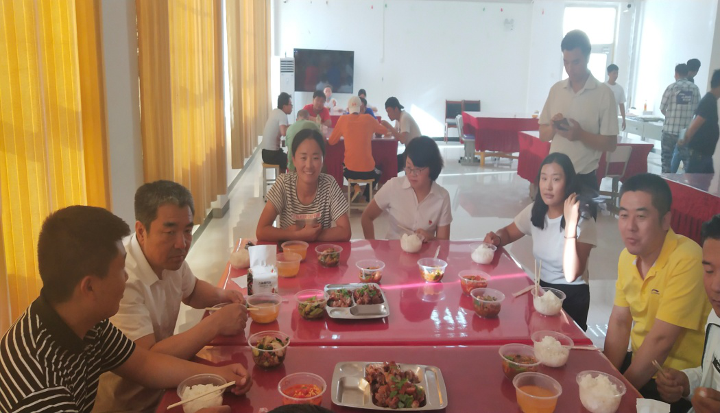 与洛浦县中等职业技术学校就业的校友一起在教职工餐厅就餐交流