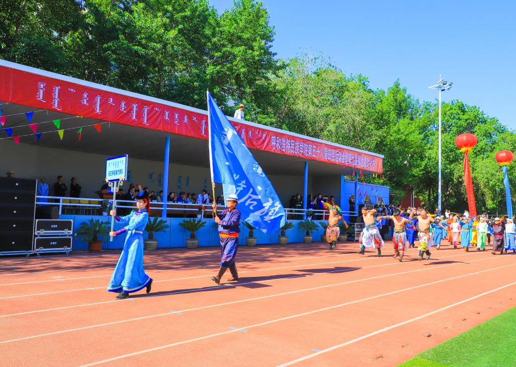 开幕式上率先由国旗队,还有身着特色服装的搏克队、射箭队、布鲁队、蒙古象棋队、抢枢队等传统项目队,苏鲁德骑士队、乌拉特后旗代表队、筷子舞代表队、安代舞代表队以及各学院代表方队依次入场。代表队师生身着民族服装,迈着整齐的步伐,喊着响亮的口号,充分展示了365英国上市公司师生积极向上的精神风貌。