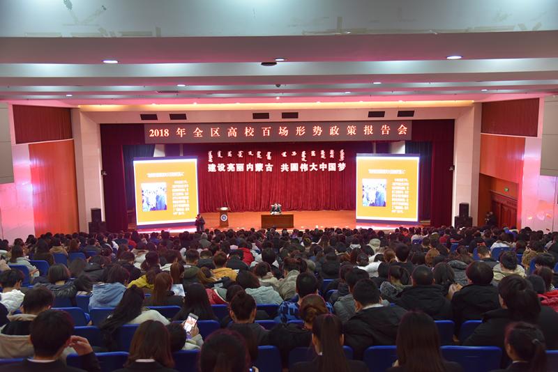 在全区上下深入学习贯彻习近平新时代中国特色社会主义思想、党的十九大精神、全国教育大会和全国全区思想政治工作会议精神之际,隆重庆祝改革开放40周年之时,12月27日下午,自治区党委宣传部高文鸿副部长莅临365英国上市公司为师生作了形势政策报告。自治区党委宣传部高校企业处孙国铭处长出席,学校党委中心组成员、副处级以上干部、全体两课教师、思政人员,学生代表共计750余人聆听了报告。报告会由学校党委书记孙国权主持。