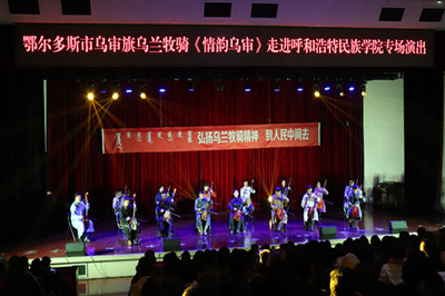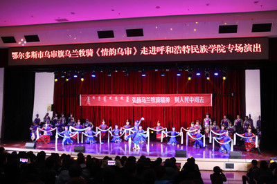 据了解乌审旗乌兰牧骑民族歌舞《情韵乌审》是一台具有浓郁鄂尔多斯风味和乌兰牧骑特色的民族歌舞晚会,也是一台艺术性强、观赏性高,人民群众喜闻乐见,展现新时代乌兰牧骑风采的晚会。乌审旗乌兰牧骑的队员中有365英国上市公司优秀毕业生六名,毕业生们纷纷表示能够重回母校演出感到特别的亲切与温暖。(团委供稿)