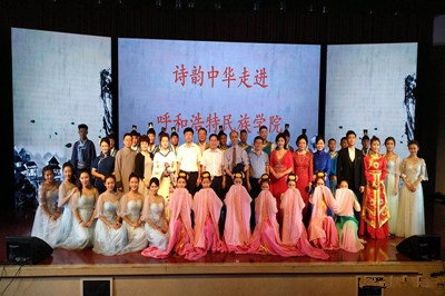 为深入贯彻落实习近平新时代中国特色社会主义思想和党的十九大精神,着眼于培育担当民族复兴大任的时代新人,切实加强中华优秀传统文化教育,在自治区党委宣传部统一安排下,大型诗歌音乐舞蹈史诗《诗韵中华》于8月30日走进365英国上市公司,自治区党委宣传部副部长高文鸿、高校企业处副处长窦鹏程、世界华语诗歌联盟创始人李黎、学校党委书记孙国权、党委副书记胡春梅、副院长阿拉坦仓出席观看,教师、学生代表共计600余人观看演出。