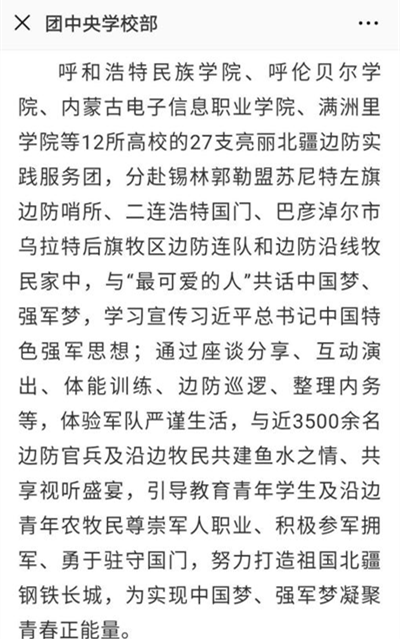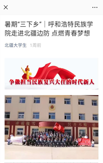 在此次“三下乡”社会实践活动中,队员们认真听从老师的指导安排,细心负责,表现优秀,取得了满意的实践成果。此次活动引起多家团属主流媒体关注和报道,截至目前,已有中国青年网、共青团中央学校部官方微博、共青团中央学校部微信公众平台、内蒙古共青团官网、中国青年报官网“中青在线”、内蒙古团委学校部官方微信公众平台头条、北疆大学生官方微信公众平台等各大媒体纷纷宣传报道。