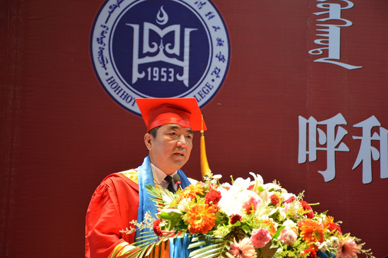 学校学士学位委员会主任委员、格日乐图院长以“舞动青春、扬帆起航”为题,以不忘初心为主线,深情寄语2018届全体毕业生。格日乐图院长首先勉励全体毕业生,要深刻领会习近平总书记对广大青年的嘱托和希望,不忘初心,坚守信念,与时代同呼吸、与国家共命运。只有不忘初心,才能扬帆致远;只有不忘初心,才能青春无悔;只有不忘初心,才能收获精彩的的人生。对即将走向社会的青年学子,格院长希望毕业的同学们,一要坚守梦想,以“凡心所向,素履以往”的追求,不负教诲,不负重托;二要忠于真心,不要被岁月磨平棱角,不因挫折自我怀疑,保持独立思考和不懈奋斗的精神;三要承担责任,勇于做一个对社会有益的人。最后,格日乐图院长祝愿所有毕业生,带上自己的初心,走最远的路,做最真的自己,拥有最棒的人生。(学生处供稿)