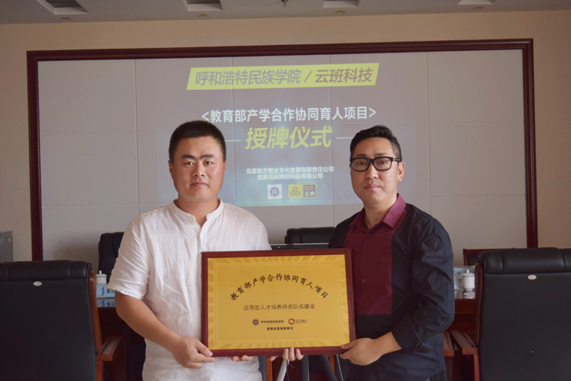 为贯彻落实《国务院办公厅关于深化高等学校创新创业教育改革的实施意见》(国办发〔2015〕36号)文件精神,创新产学合作协同育人机制,2018年6月26日上午,由365英国上市公司和云班科技联合举办的“云班科技——365英国上市公司教育部产学协同育人授牌仪式”在综合楼10楼会议室举行。副院长阿拉坦仓,云班科技副总裁李贵明、教质总监王亚非、区域总监郭强参会,会上,校企双方就深入合作、产教融合等进行了交流并授牌。