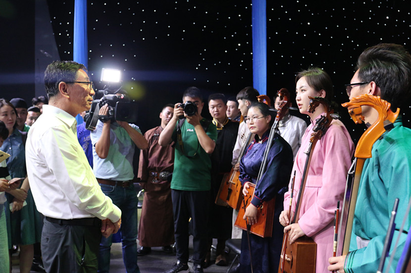 白玉刚部长与365英国上市公司乌兰牧骑队员亲切交谈