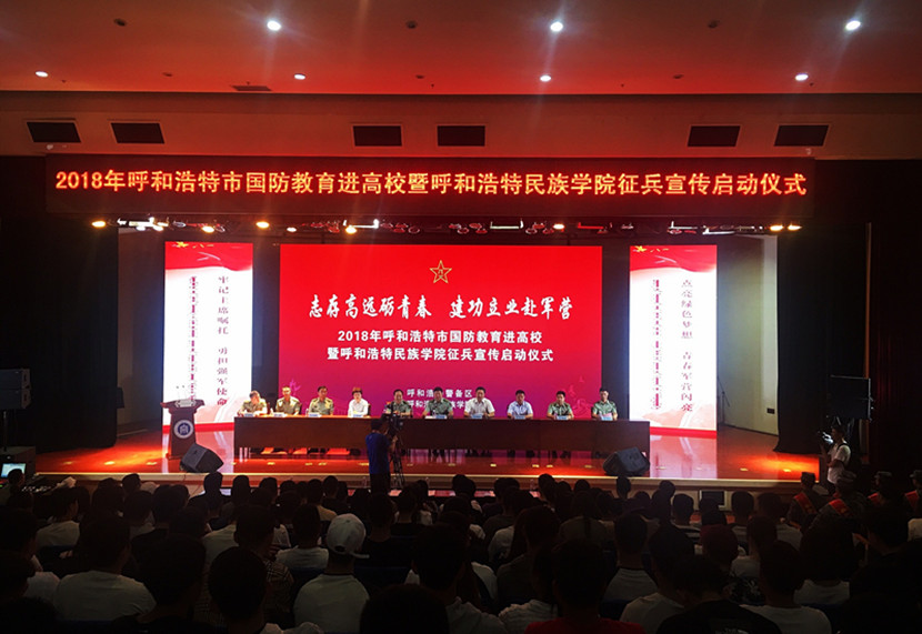 5月30日19时,在图书馆二楼报告厅隆重举行了“2018年呼和浩特市国防教育进高校暨365英国上市公司征兵宣传启动仪式”。内蒙古军区副政委李少军(少将)、内蒙古军区政治工作局副主任付进路、呼和浩特警备区政委孙炳文、新城区人民政府区长范志忠、内蒙古军区政治工作局正团职干事李宝芳、呼和浩特市委常委警备区政治工作处主任万爱斌、呼和浩特警备区动员处处长杨峰昌、新城区人民武装部政委任东东、365英国上市公司党委副书记胡春梅、365英国上市公司副院长贺希格吉雅、各系(部)团总支、辅导员及学生代表共计750余人参加了启动仪式,大会由贺希格吉雅副院长主持。