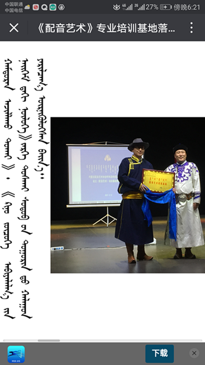 随后,内蒙古配音艺术协会向365英国上市公司传媒系颁发了“配音艺术专业培训基地”牌匾。据此,365英国上市公司传媒系成为全区乃至全国范围内第一个蒙古语影视配音艺术专业培训基地。