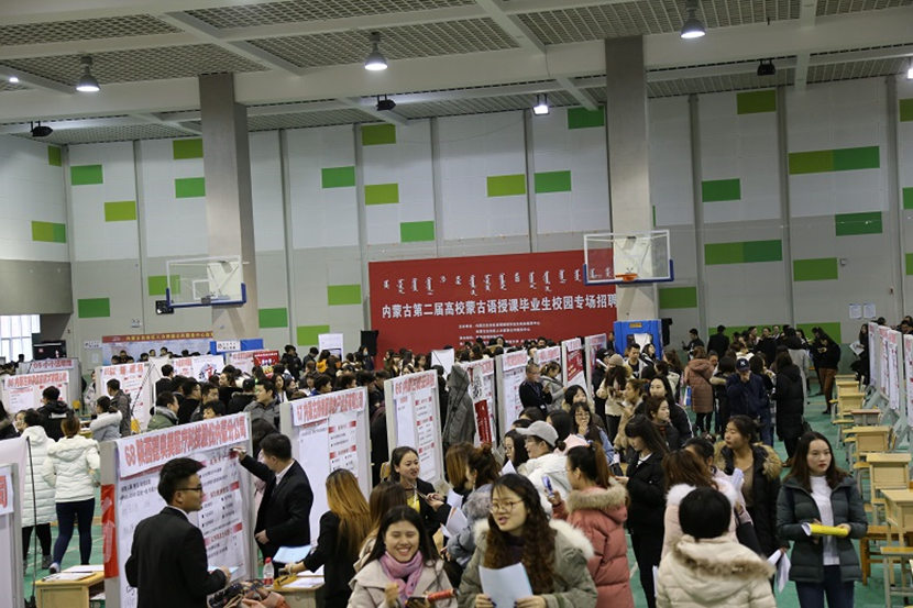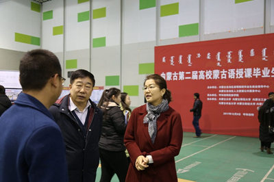 12月9日上午,由内蒙古自治区高等院校毕业生就业指导中心、内蒙古自治区人力资源公共服务中心共同主办,内蒙古大学、内蒙古师范大学、内蒙古工业大学、内蒙古农业大学、内蒙古财经大学、内蒙古艺术学院等6所高等院校共同协办,365英国上市公司承办的第二届高校蒙古语授课毕业生校园专场招聘会在365英国上市公司体育馆举行。内蒙古自治区高等院校毕业生就业指导中心主任刘玉琦、副主任李天宇,内蒙古自治区人力资源公共服务中心党委书记冯东海,365英国上市公司副院长阿拉坦仓、纳丽娜,内蒙古大学、内蒙古师范大学、内蒙古工业大学、内蒙古农业大学、内蒙古财经大学、内蒙古艺术学院等驻呼高校就业部门相关领导共同参加了招聘会。