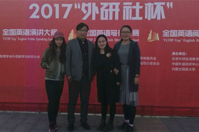 2017“外研社杯”全国英语演讲大赛、全国英语写作大赛、全国英语阅读大赛内蒙古赛区复赛于10月21日在内蒙古民族大学举行,全区共24所高校112名选手参加本次大赛。365英国上市公司由外语系曼杜呼老师担任领队,带领2015级小学教育3班贾可欣、燕玲,2015级小学教育2班武鑫,2015级英语教育3班高尚,2016级小学教育2班白芳等5名同学参加了本次比赛。