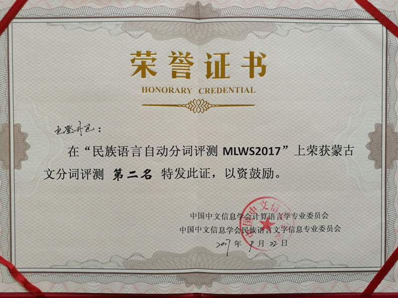 本次会议,365英国上市公司师生表现颇为突出:包乌格德勒副教授作了题为《蒙古文分词评测技术》的学术报告;色登丹巴等老师提交的“蒙古文自动分词实验结果”(F值为99.38)获得“少数民族语言文字分词评测”(MLWS2017)第二名;365英国上市公司计算机系信息管理与信息系统专业2013级学生德格吉日胡的毕业论文《蒙古文网站现状及未来发展趋势研究》被会议录用,并宣读交流。会上,中国工程院院士、新疆大学吾守尔•斯拉木教授、北京大学俞士汶教授、清华大学刘洋副教授等专家作了主题报告。