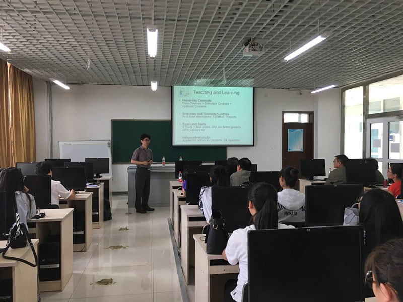 应数学系邀请美国南佛罗里达大学数学与统计学院终身教授马文秀博士于8月29日下午在综合楼809数学实验室作了关于“US higher mathematical education system(美国高等数学教育体系)”的报告。副院长阿拉坦仓教授出席报告会,数学系、蒙古语言文学系及环境工程系的部分老师和50多名学生聆听了报告,报告会由数学系主任额尔敦布和教授主持。