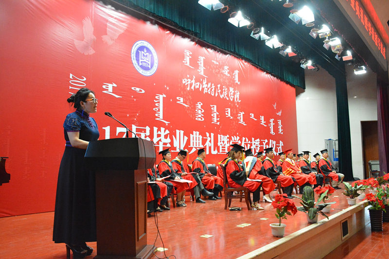 教务处副处长胡毕斯哈拉图宣读《2017届学生毕业情况》
