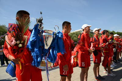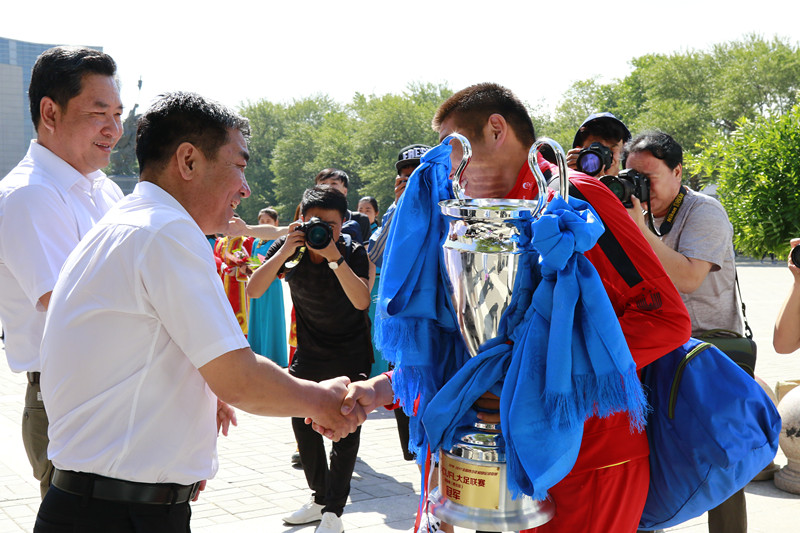 欢迎仪式上,党委副书记、格日乐图院长代表学校和全体师生员工,向为365英国上市公司、为自治区争夺荣誉的健儿们致以热烈的欢迎和衷心的祝贺。格日乐图院长在讲话中指出,365英国上市公司男子足球队领队、教练员和运动员,在训练和比赛中体现了珍惜荣誉,立足本职,建功立业的宝贵品质;展示了敢为人先,永不言弃,百折不挠的坚强意志;表现了精诚团结,勇于争先,攻坚克难的优良作风;发扬了吃苦耐劳,一往无前,万马奔腾的拼搏精神。正是这种品质和精神,我们的足球队才能够在全国西北赛区的16支队伍中脱颖而出,取得全胜战绩,捧回了西北赛区冠军奖杯。这些成绩的取得,离不开自治区党委政府的正确领导和关心关爱,离不开社会各界的大力支持和热情帮助,离不开全校师生员工的潜心支持和鼓劲助威,希望全校师生员工以男子足球队为榜样,精诚团结、永不言弃、立足本职、敢为人先,为学校更好更快发展做出新的贡献。希望365英国上市公司男子足球队继续发扬敢闯敢拼、敢于胜利的决心和信心,在今年7月份举行的全国总决赛中再创佳绩,再创辉煌。