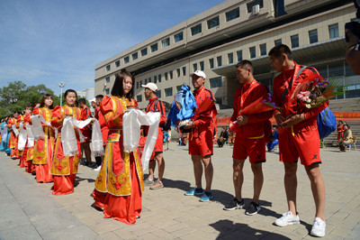 学校领导欢迎教练员、运动员