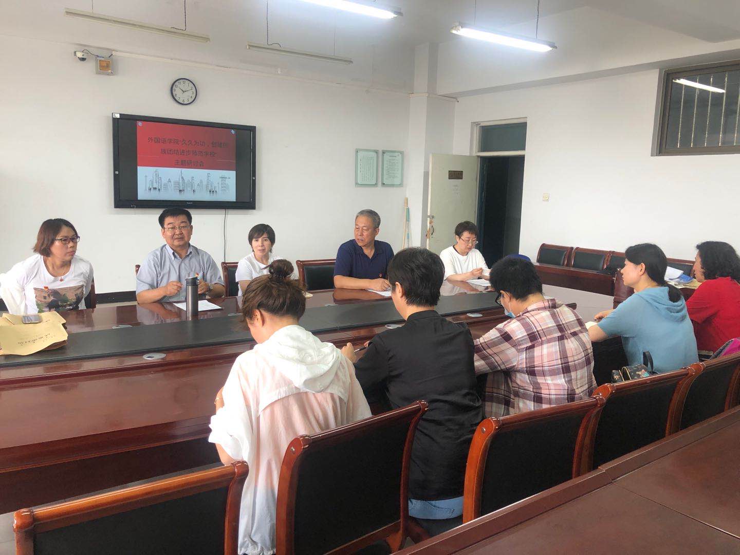 为激励全院各民族师生党员坚定理想信念,推进民族团结进步创建工作,提振广大师生党员干事创业的信心和决心,以更加优异的成绩迎接建党99周年,6月24日下午时,外国语学院党总支在学院会议室组织开展了“久久为功,创建民族团结进步示范学校”主题研讨活动。会议由党总支书记布日古德书记支持,学院教工党员共计15人参加。